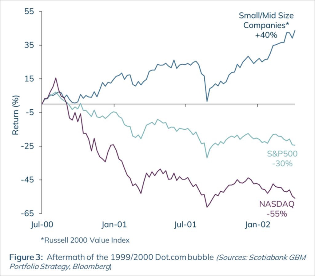 Figure 3 illustrates what the aftermath of the Dot Com era of 1999/2000 looked like. In short, the hype cycle went into reverse, while thoughtful, fundamental investing reasserted itself.